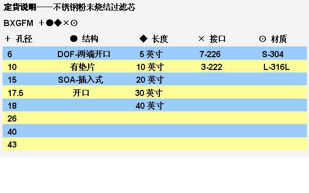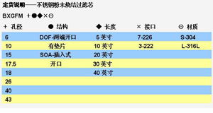 材質 304、316低碳不銹鋼粉末在惰性氣氛中經專有工藝燒結而成。燒結前,金屬粉末未經擠壓,也沒有使用粘合劑等其他物質。 過濾精度: 過濾精度:液體中5-55μm,氣體中0.3-20.0μm。